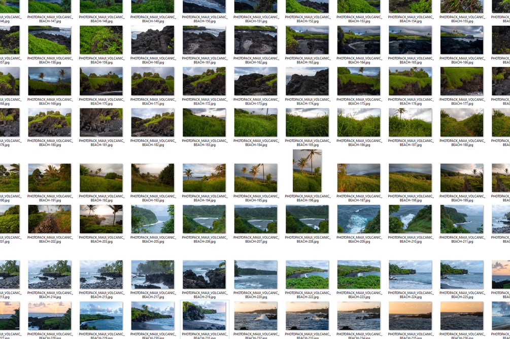 This pack contains 200 high quality 6k photos, shot in various locations on the Maui coastline, in Hawaii. The pack walks you along nature trails, rocky coastlines, volcanic rocks etc... with closeups and wider shots. Focal varies from 24 to 70mm.